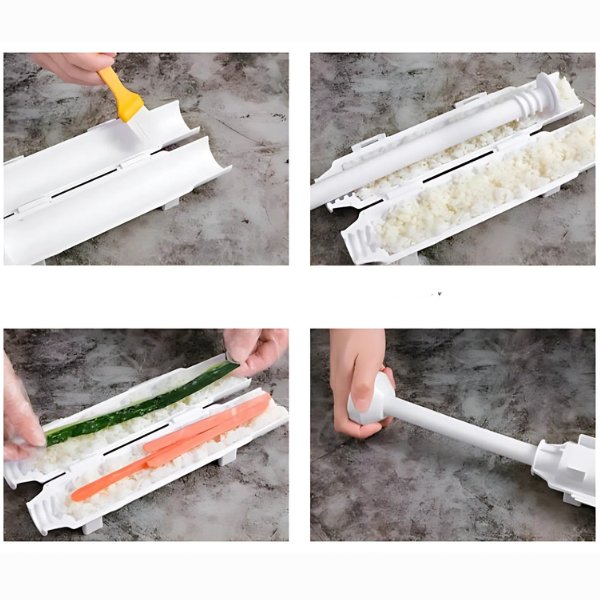 Naša súprava na prípravu sushi všetko zjednoduší a vytvorí dokonale tvarované rolky len v troch jednoduchých krokoch – nie sú potrebné žiadne skúsenosti!