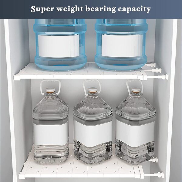 - Balenie obsahuje: 1x rozťahovací skrinkový napínač policový úložný regál do šatníka, kuchyne, kúpeľne.